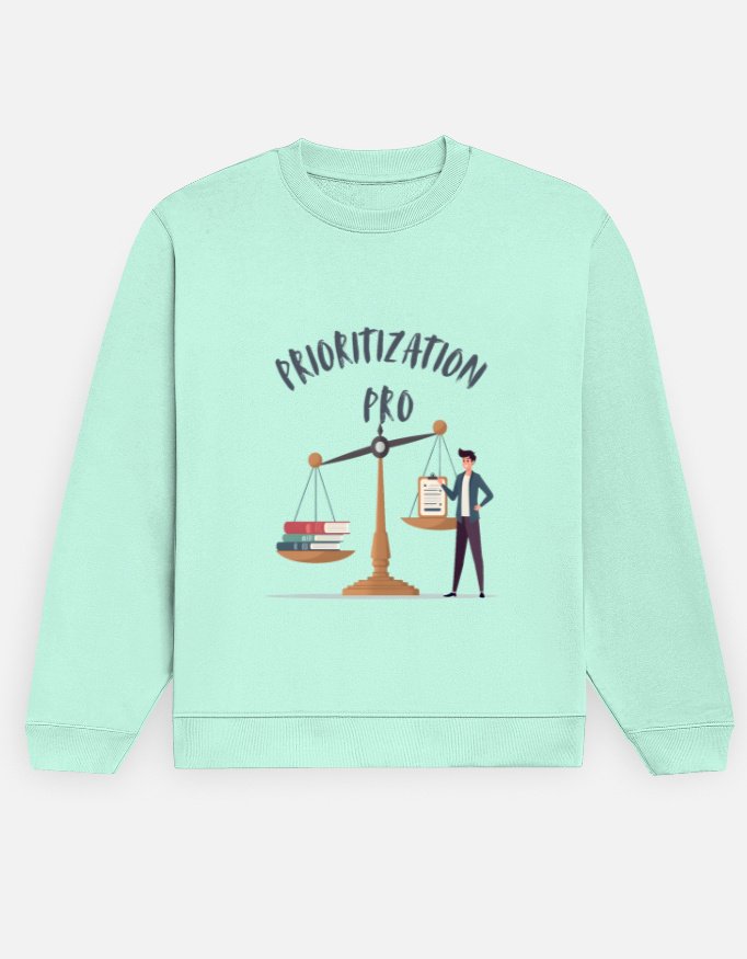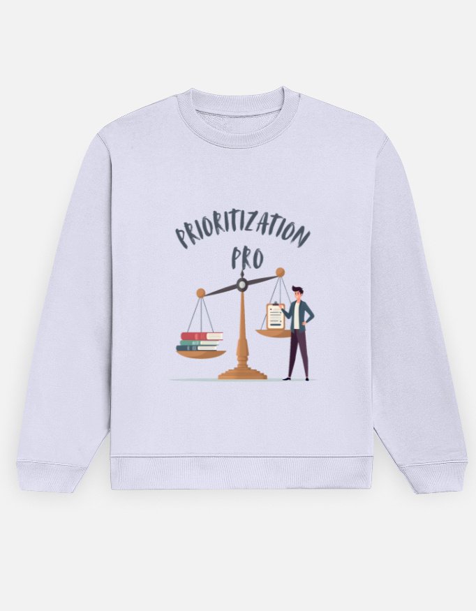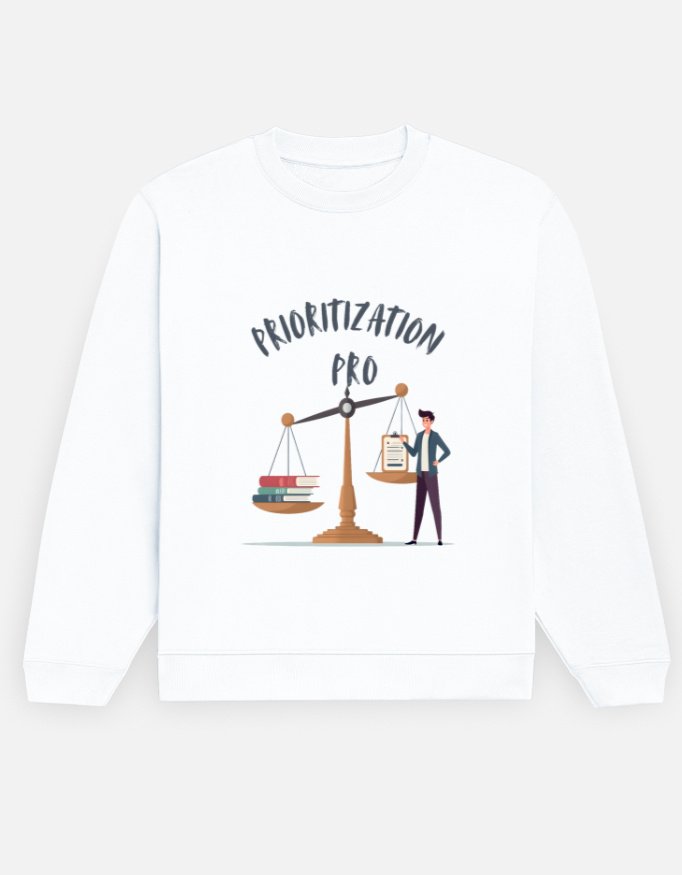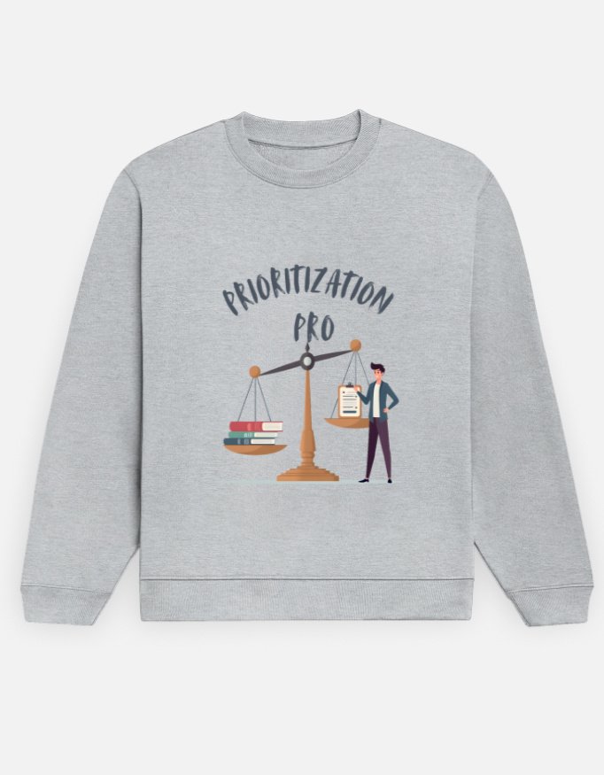Step into your day wearing the “Prioritization Pro” sweatshirt, and let the world know you’re a master of decisions, focus, and productivity. Ideal as a gift for fellow professionals or as a practical addition to your wardrobe, this sweatshirt is more than apparel—it’s a lifestyle statement.