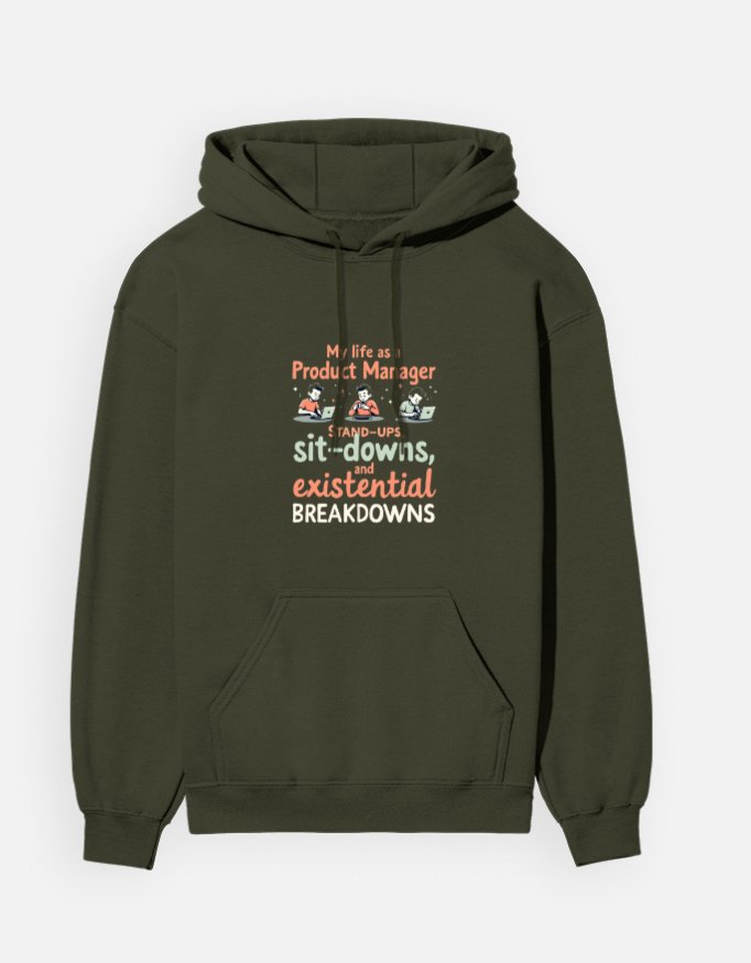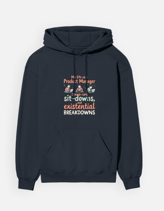 Whether you’re treating yourself or surprising a fellow product manager, this hoodie is more than a garment—it’s a celebration of life’s ups and downs with a humorous twist. Show your love for comfortable, stylish essentials that keep you laughing through the chaos of daily standups. Order yours now and bring warmth, coziness, and a dash of comic relief into your wardrobe!